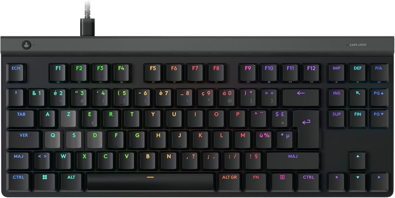 Étant un utilisateur régulier des produits Logitech, je dois dire que je n’ai pas réellement été surpris par la conception du produit. Celui-ci répond aux standards de la marque, mais aussi à ses quelques défauts. Parmi ceux-ci, on retrouve le côté rétroéclairage. Bien qu’il soit totalement customisable au sein du G-HUB (programme officiel de Logitech), on regrette que les touches secondaires ne soient toujours pas éclairées et encore plus dans une version TKL qui mise justement sur ces fonctions. Une solution aurait été de modifier le rétroéclairage à la pression de la touche FN en illuminant les options secondaires.