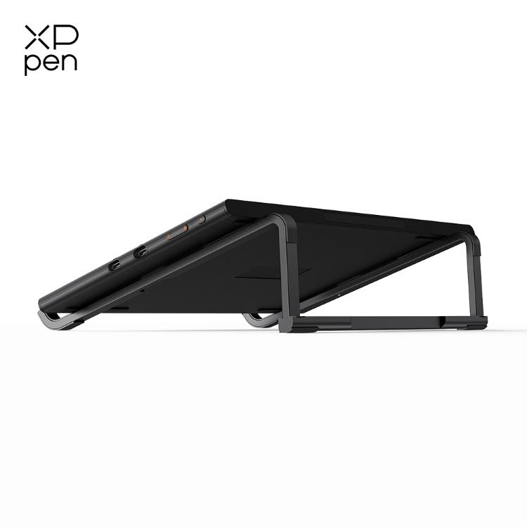 XPPen mérite d'être salué pour avoir inclus un support pliable dans la boîte, un accessoire que d'autres constructeurs facturent en option. Ce support en matériau composite rigide permet d'ajuster l'angle de travail entre 0 et 60 degrés. Cette inclinaison améliore considérablement l'ergonomie et réduit la tension cervicale lors de sessions prolongées. Le support reste stable avec une charge supplémentaire allant jusqu'à un peu plus de 500 grammes, ce qui convient pour un usage standard, bien que des mouvements très appuyés puissent provoquer un léger tangage. Une fois replié, le support ajoute environ 15 millimètres d'épaisseur à l'ensemble, soit l'équivalent d'un smartphone, un compromis acceptable pour la polyvalence apportée.
