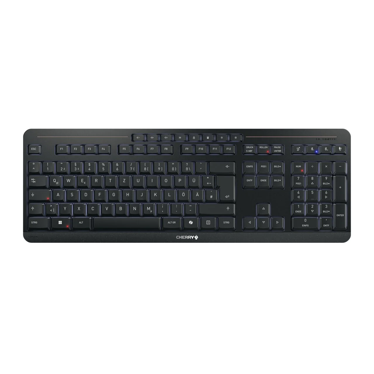 Cherry équipe ce clavier de ses propres switches à ciseaux SX, une technologie qui se rapproche de l'expérience des claviers portables haut de gamme. La course des touches reste courte, la résistance homogène et le retour tactile suffisamment net pour enchaîner les frappes sans fatigue. Le niveau sonore se situe dans la catégorie silencieuse, un atout majeur pour les environnements partagés ou les longues sessions en visioconférence.