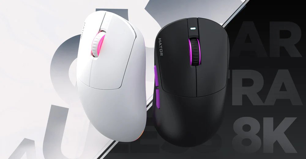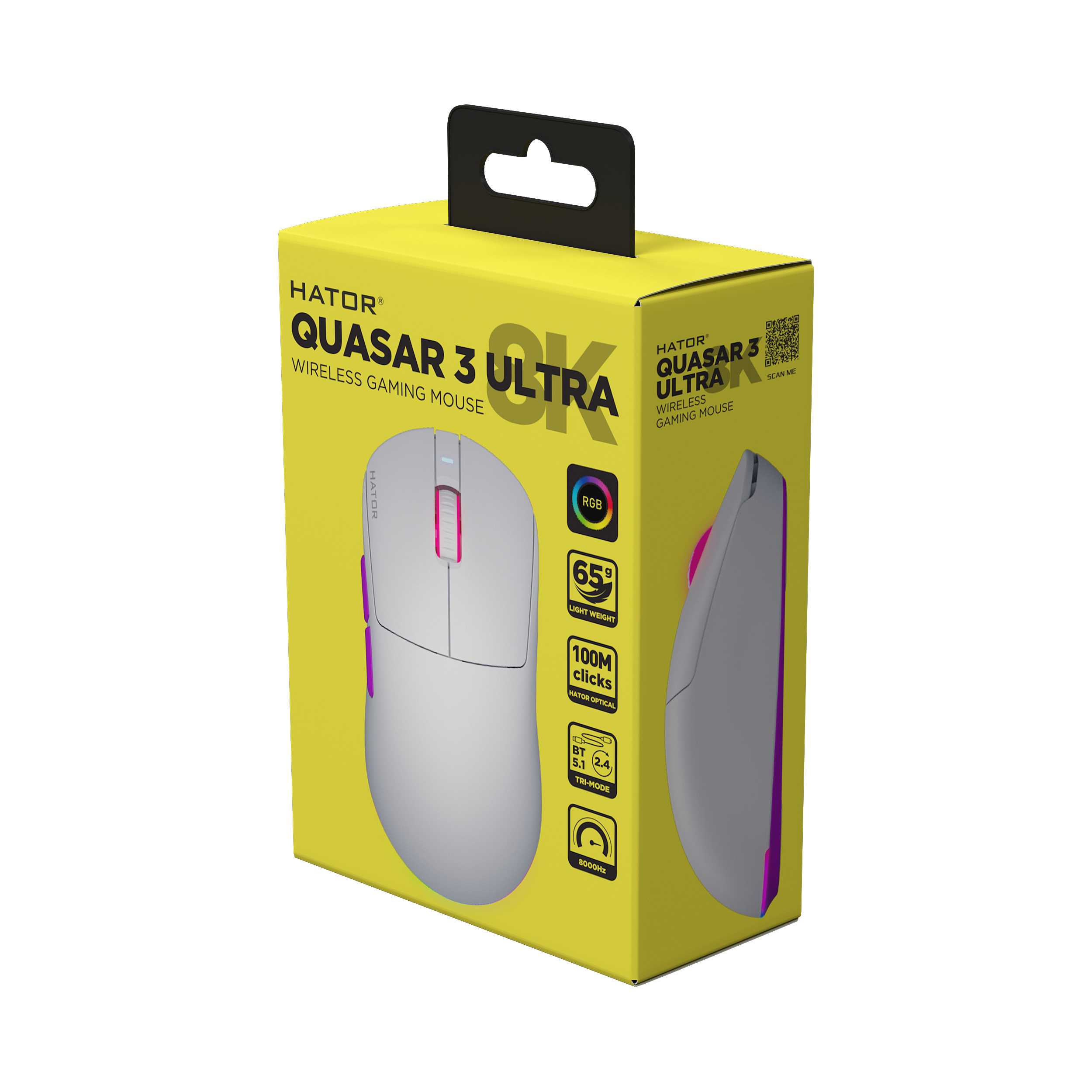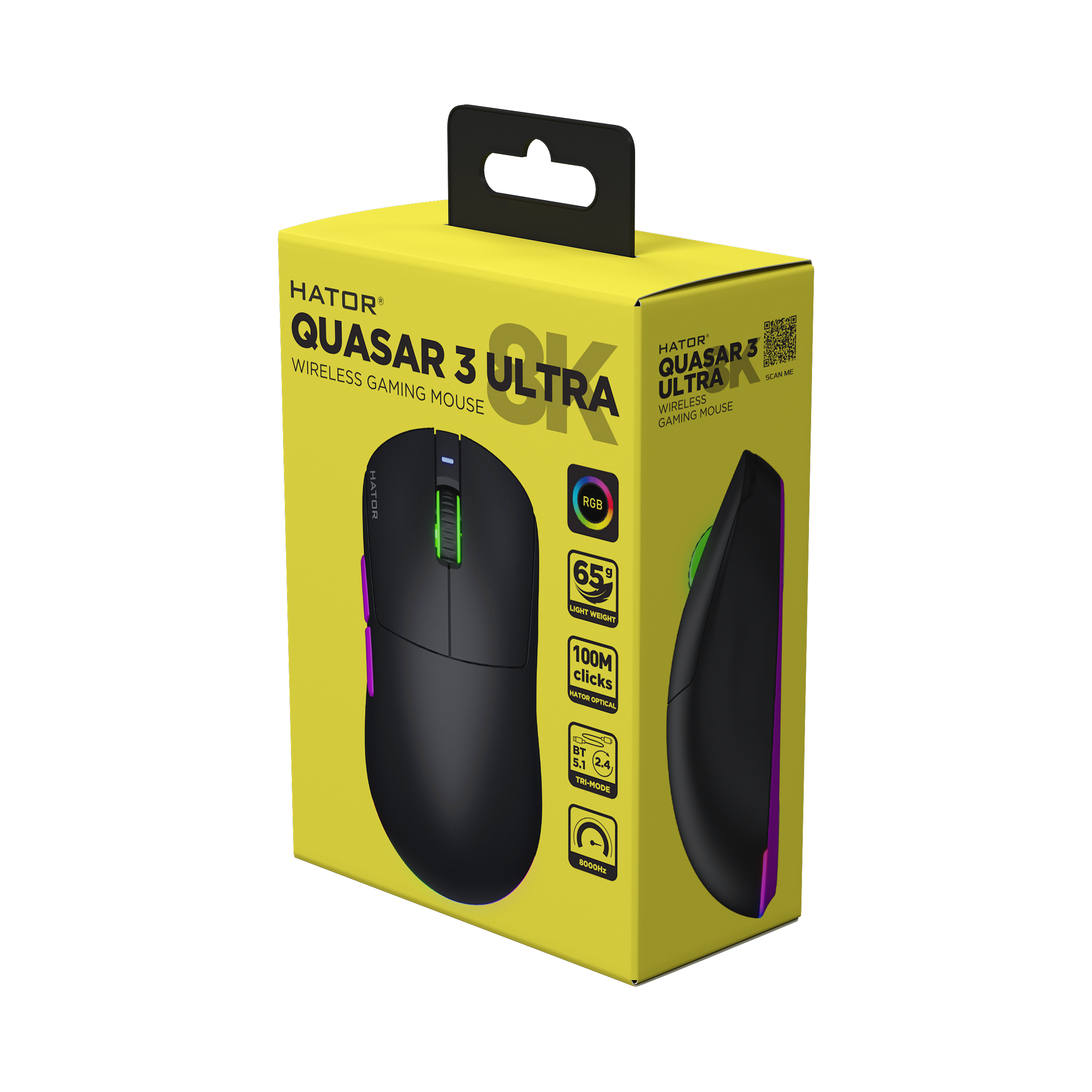 Hator propose avec sa Quasar 3 Ultra 8K Wireless une souris gaming ultra-légère équipée d'un polling rate de 8 000 Hz en sans-fil et d'un capteur PixArt haut de gamme, le tout pour environ 80 EUR.