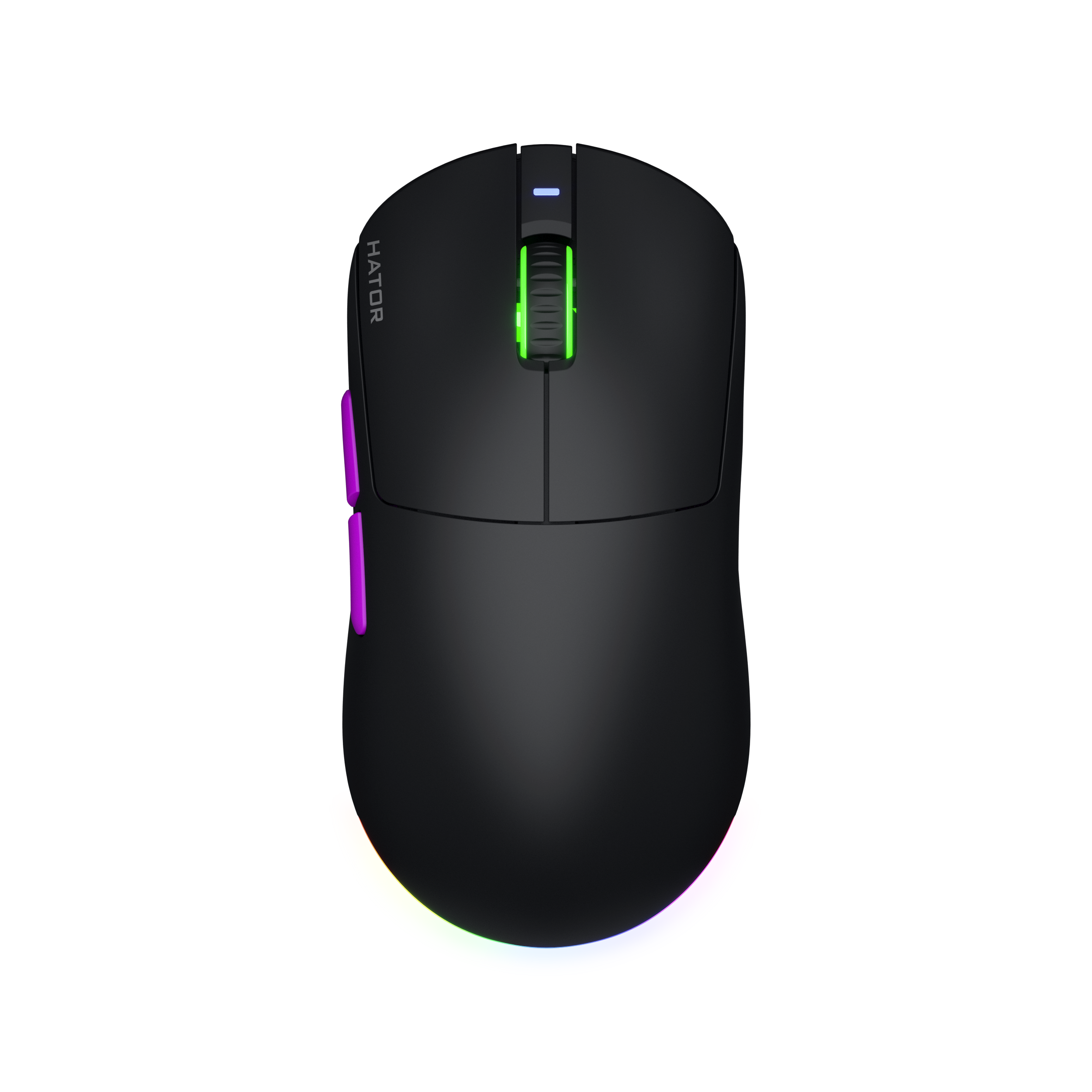 Les boutons principaux embarquent des switches optiques HATOR 100M, développés en collaboration avec Kailh. Cette technologie optique élimine le rebond mécanique inhérent aux switches classiques et garantit une durée de vie théorique de 100 millions de clics. La détection par faisceau lumineux offre un temps de réponse quasi instantané, perceptible dans les situations de jeu tendues où chaque milliseconde compte.